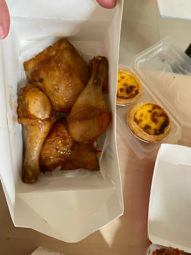 好便宜好便宜,仿佛已经超出香港物价了狂惹香烧鸡腿🍗个头不算大,还稍微有点干巴,不过味道还不错。外面一层焦香紧实还带着蜂蜜的香甜,里面有鸡肉还带着汁水💦香蜜鬆餅的口感有点像司康🥧,又有点像层酥松的蛋液包裹着很扎实而又绵密的面包,但吃着也是有点干巴…真的很便宜,真的很爱查看更多