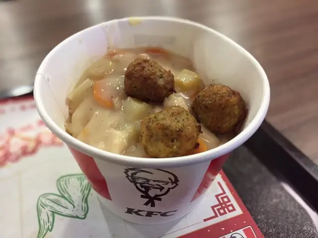 食了KFC的肉丸雞皇桶飯多年,由$25,食到$27,到最近$30。口感十足的肉丸,白汁配上雞肉,大大桶飯,非常飽肚,雖然有時飯底較濕,但多數都是正正常常。而且可以揀配中汽水或者熱蜜糖綠茶,糧尾又飽肚的最佳選擇。查看更多