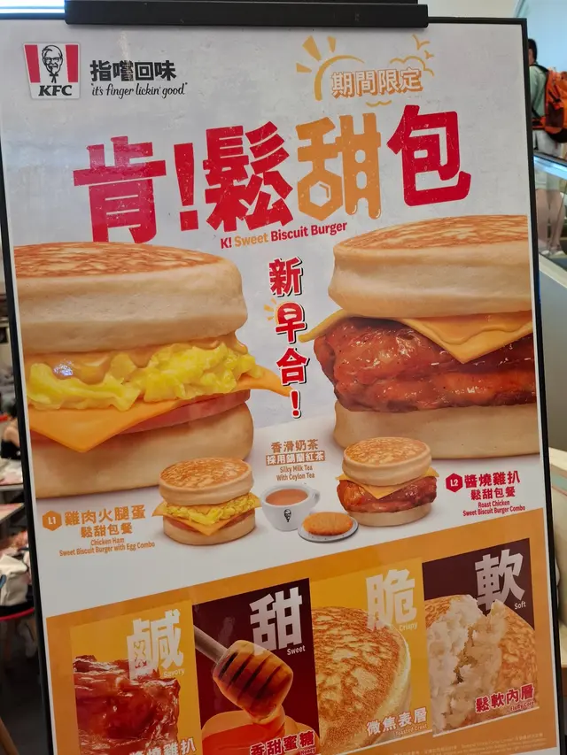 今日好早就去咗上環,見有啲時間就去咗KFC食咗個早餐,用咗佢哋個會員優惠$27.5就叫咗個醒神雞扒套餐,我之後睇返幅圖先知明明係麵包,但係出嚟點解係鬆餅嘅🤨🤨講返個餐先:有一個鬆餅、一塊雞扒、一條腸仔同一杯嘢飲雞扒都幾細塊,有汁係上面,略嫌鹹咗少少😑😑腸仔就粗粗短短咁,咬落有飽滿嘅感覺,但係都咸咗啲😐😐前後食咗兩個重口味嘅嘢,胃有少少Heavy😔KFC鬆餅就出名乾㗎啦!但今次有驚喜雖然都係乾,但外皮鬆脆甜甜地都唔錯😀😀中和返d咸味,如果襯返麵包配落雞扒醬會好啲😝😝要讚係服務幾好,男店員有笑容😊😊,說話清楚!早上就比到客人清爽嘅感覺😚😚,心情都開心d😁😁查看更多