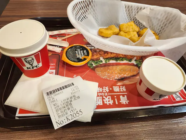 在上環覓食,總教人猶豫。成個商場餐廳的價錢都「高人一等」,路過KFC,看見$30幾的套餐牌,倒是個輕食好選擇。「6件上校雞寶+馬鈴薯茸+熱奶茶」這個配搭頗妙。雞寶炸得金黃,一口一件,外脆內嫩,作為小吃確實不錯。最欣賞那杯馬鈴薯茸,綿滑細膩,帶著牛油香,暖呼呼的很是治癒。熱奶茶普普通通,但襯托著這份簡單,剛剛好。結果高估了自己胃口,六件雞寶到底還是吃不完。看著剩餘的兩件,忽然覺得在這地價高昂的上環,能用三十多元換來這片刻飽足,簡簡單單,熟悉嘅kfc,熟悉嘅點餐機。查看更多