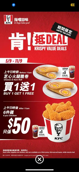 为左忙碌既都市人早餐需求KFC由8月28日起限时推出全新「肯!口袋卷系列」!🥳呢个轻巧可以方便拎既「口袋卷」就岩哂烦忙既人啦~有清新搭配丰富馅料既鸡丝卷又或者惹味浓郁又juicy酱烧鸡卷令你每个早上都有新选择!✨田园鸡丝「口袋卷」🥗 $33又点会谂到KFC会出新新健康既鸡丝卷嫩滑鸡丝配埋新鲜番茄,生菜同芝士加埋蛋黄酱同意大利香料真系清新又美味😋餐仲有埋香脆薯饼同香滑奶茶茶香奶滑🥰为你开启新一天的动力!☕️💖如果唔想食清新野 可以简另一款惹味浓郁又juicy 酱烧鸡扒「口袋卷」 $37浓郁酱烧汁加埋嫩滑烤鸡扒每卷都有29.8克蛋白质!搭配新鲜生菜同芝士保留KFC一贯的美味真系唔好错过~早起身嘅你,记得把握机会去KFC 「袋」走一卷好滋味啦,绝对唔可以错过!🚀💨再忙都要食早餐呀😉✨✨留意返山东街、亚洲国际博览馆、赤柱、又一城、启德分店都无得卖呀~ ✨✨KFC…查看更多