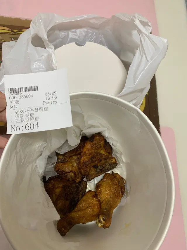 今日外賣自取買6件雞,5件狂惹香燒雞,1件香辣脆雞,只俾了5件狂惹香燒雞,完全冇比到香辣脆雞,想打去返鋪頭反映返,電話長期無人聽,已經不是第一次俾錯野,希望執單時細心d查看更多