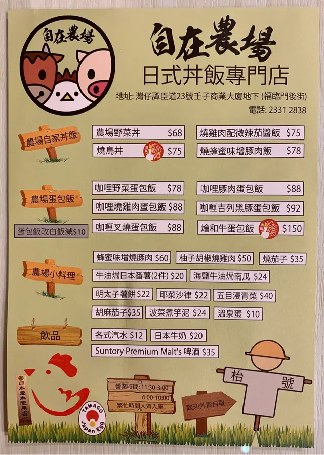 今日想食日本餐,經過這位置時,發現上手的日本餐廳已經易手成為自在農場日式丼專門店。時間尚早,又不用等位,試一試吧!裝修同上手有9成相似,感覺比以前光猛點。點餐紙一早已經預備好,我們選了燒鳥丼和燒蜂蜜味噌豚肉飯,大約5分鐘左右就來了。燒蜂蜜味噌豚肉飯($78) 的賣相一般,味道比較似港式茶餐廳的叉燒飯,飯量正常,豚肉的口感和味道都不錯,鬆軟入味。店長推介的燒鳥丼($75)賣相好得多,左下的一堆是芋頭泥,雞和醬汁的味道好,口感唔乾又大份,相比起豚肉飯感覺實在一點。總括而言,今餐的質數和價錢都跟我們想像的有一點出入吧。…查看更多