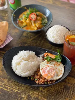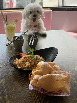 pet-friendly thai spot in the countryside! we loved the cozy train carriage priv rooms. the food was decent—must order their 🐷pork neck shrimp oil fried rice, ☘️pad kra pao and 🥘pancakes for dipping in the curry. dun forget to order the 🐾veggie cake for ur fur baby too! it was tiny tho—mochi finished it in one bite可以帶寵物嘅泰國菜!好鍾意佢啲私人火車廂卡位,啲食物ok,🐷豬頸肉蝦頭油炒飯同☘️香葉肉碎煎蛋飯夠晒鑊氣,一定要叫🥘手工薄餅點咖喱。記住叫埋個🐾蔬菜蛋糕俾狗狗,不過好細件咋,mochi 一啖就食咗…查看更多