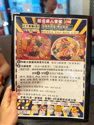 前晚朋友带我去食一间好有特色嘅餐厅,之前真系未见过。我哋拣咗个餐单上嘅招牌菜,就系佢哋嘅盘盘麻辣烫天花板两人餐。真系唔错