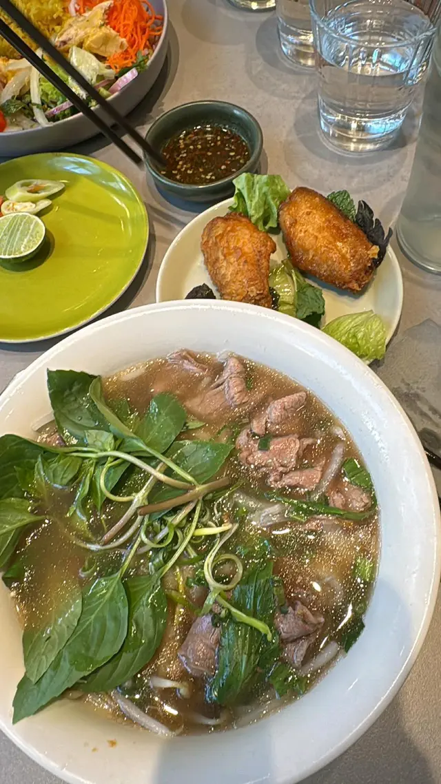 早排同朋友聚舊,約左嚟食呢間越南嘢😋炸軟殼蟹米紙卷好食!軟殼蟹炸到脆卜卜,而且仲熱熱地,應該炸起冇耐!😋 黏糯嘅米紙卷包住爽脆嘅青瓜、紅蘿蔔同埋軟殼蟹,口感好豐富!推薦可以試下!😁手撕雞湯粉雞肉都幾嫩,唔會鞋颯颯👍🏻 湯底都幾清甜,冇味精味😋 比較surprise嘅係佢嘅分量都幾大😋 一個人食一碗食到好飽😂燒牛肉撈檬牛肉都幾嫩口,有肉味👍🏻 撈檬嘅汁酸酸甜甜,非常開胃!😋😋😋芒果熱情果沙冰沙冰唔會太甜,而且好濃芒果味😋 啱晒鍾意芒果嘅我😋 最頂仲有好多熱情果,兩者嘅味好夾😁總結!價錢唔算貴,而且都幾好食,不妨一試😙…查看更多