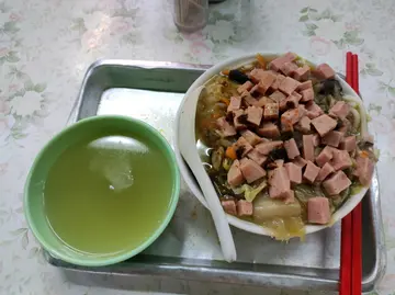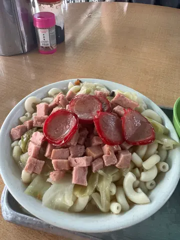 餐肉细细粒唔够𩠌可以 + 炸云吞 炸蚧蚶红肠 肠仔 仲有雪菜 炸菜 鸡翼 萝卜……☝️太复杂……每次都系食传统𠮶款 至多系+3片大红肠$2.5好味道汤清清地 但有啲颈渴