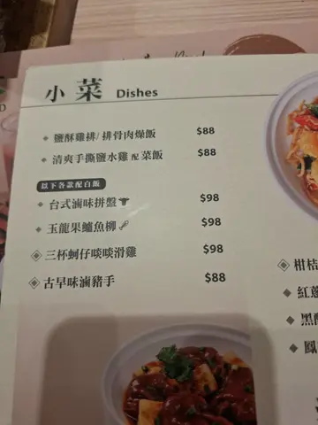 在旅游展得到茶木优惠券,所以今晚在此癫拿。就座后,职员主动sell二人餐。有汤有饭有二主食二甜品二杯饮品,咩都有,唔洗谂,样样皆备,无需左计右计。最烦恼=点哪个主菜!手机下单后,慢慢等晚餐来到。台式卤味拼盘 溏心蛋半只,豆腐鸡翼牛𦟌五花腩金钱肚各二件,一堆猪耳,花生垫底。全部卤得十分入味,要马上食白饭!三杯蚵仔啖啖滑鸡 这个滑鸡的咸度比不上卤味拼盘。 滑滑蚵仔和鸡肉,还有鸡脾菇,栗子。淀粉质=白饭&手作面虫草花鲜菇汤 上枱以小火加热。没有鲜菇,但有干身的菇。汤清甜,刚好可去除主菜的咸香+油腻。甜品二款香提舒芺蕾奶油松饼   二粒青提对半开,变做4 X 0.5粒铺在表层,中间忌廉,中芯以糯米珍珠承托,松饼皮夹著来享用。整体不油腻,不太甜,仍有胃口享用粿条。台式米麻糬粿条红白配,衬色一流。白色杰挞挞的糊状物有米粒,带玫瑰香。浅啡色条状物似凉粉/仙草/爱玉/薯粉,要咬多几口。尝过不太甜的奶油松饼,就觉得这个粿条比较甜。饮品选择黑糖姜母茶&冻柠茶。埋单免廿蚊,等于免加一。查看更多