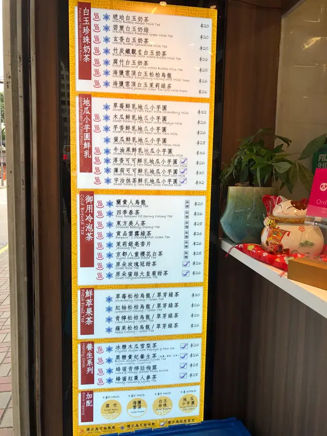 同區台飲一間執完一間又開。真係好佩服台飲嘅韌力。午飯時段路過見唔太多人。天氣又咁熱真係好需要一杯冰凍嘅野飲。幫襯過好幾次。試過芋圓冷泡茶同奶茶。芋圓比較淡口。夾埋甜嘅茶。令到啲芋圓本身更加冇味。冷泡茶有啲冇用茶袋。會飲到成口都係葉。結論始終都係最鍾情琥珀奶茶。奶茶色偏橙。試過問係咩茶底。不過店員答唔到。味道就似係泰式奶茶。