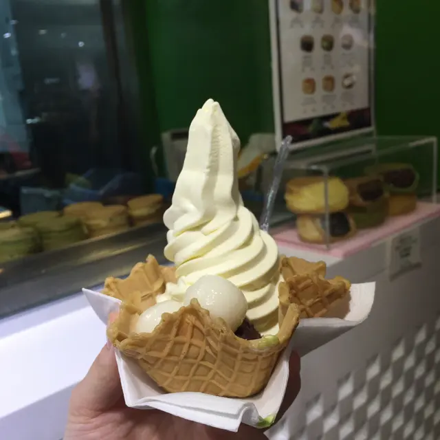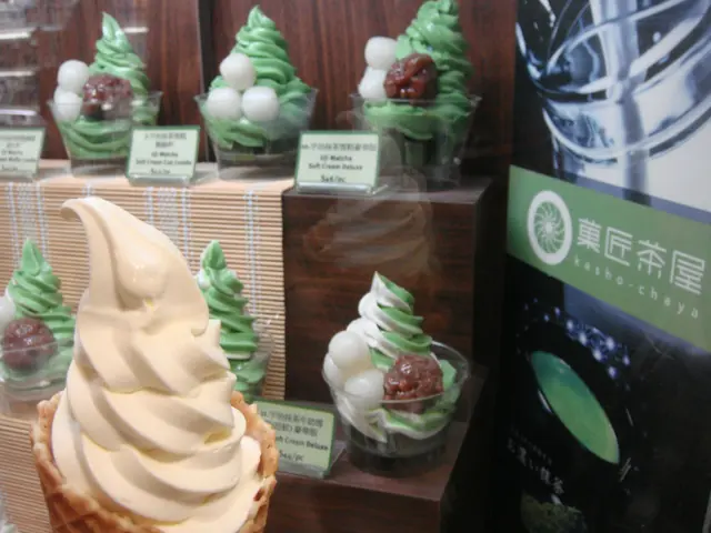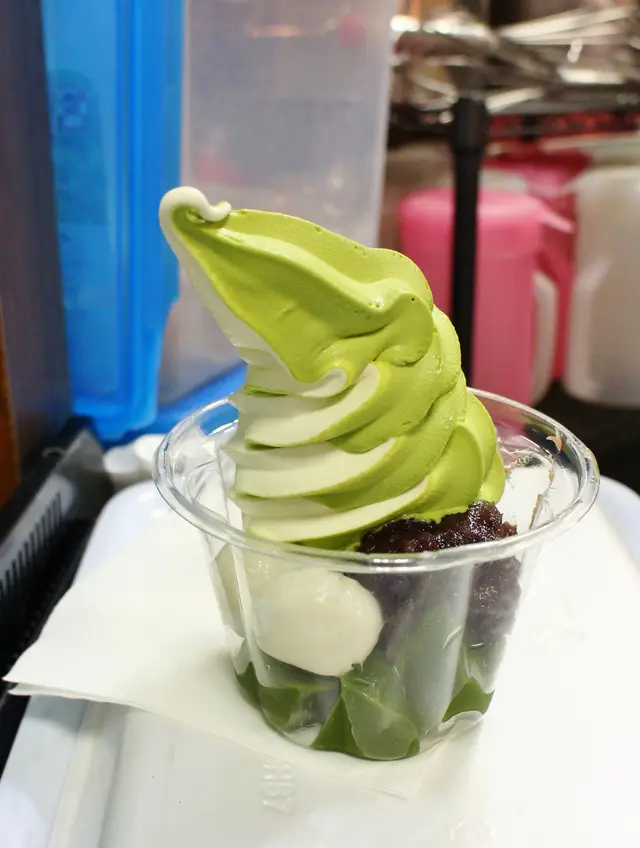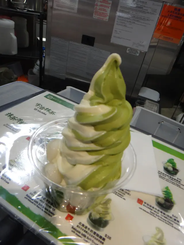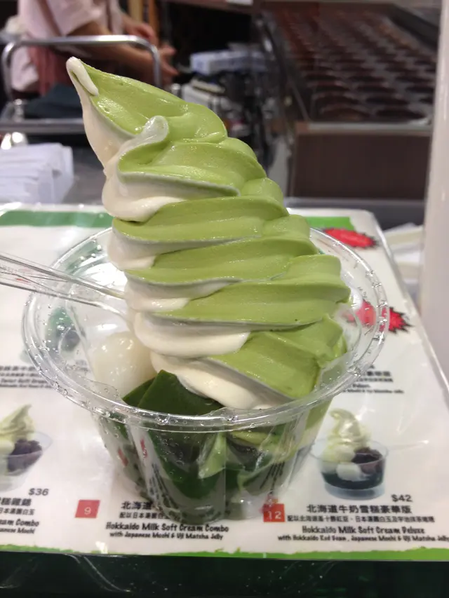 I have been here so many times but never tried the green tea flavoured icecream because the vanilla ice cream was always nice.This time I ordered No 8, which was half vanilla and half green tea with dumplings and green tea pudding cubes.The green tea ice cream was not as sweet as the vanilla, it was milkier with some bitterness.The taste of green tea powder was quite strong.I was quite disappointed today that they sold out of the green tea drink because I wanted to try that.However they had cheese and ham obanyakis which was not there before.The vanilla ice cream, dumplings and green tea pudding cubes tasted how it should.查看更多
