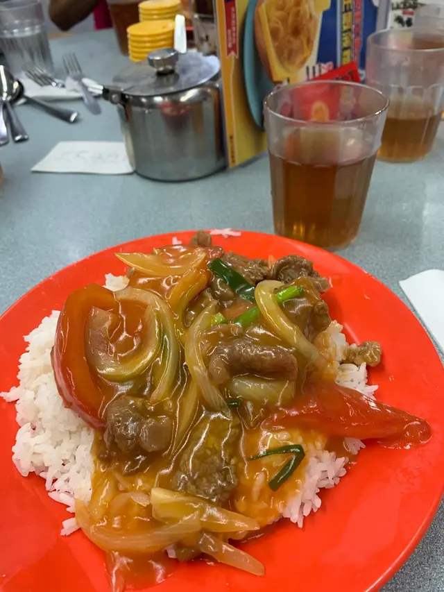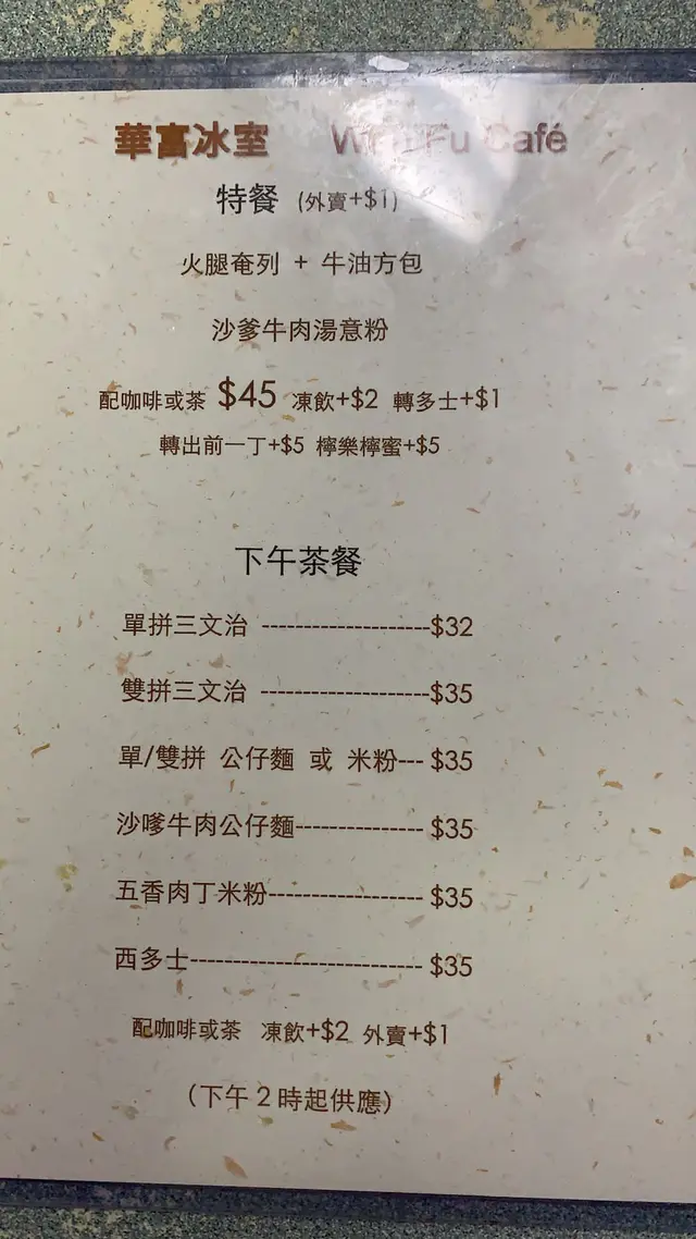 工作關系要去華富村,雖然是南區人但也甚少踏足此區。此區有相當年紀,很多設施已經有明顯歷史痕跡。就如「華富冰室」一様我和同事一起在這裡吃午餐冰室已經很舊,牆上掛着不同的posters 手寫餐牌等,無論枱和椅子都很殘舊,客人也是街坊甚至地盤工人為主。我點了常餐沙嗲牛肉通粉火腿奄列,餐包沙嗲牛肉幾香,有咬口,通粉亦煮得啱啱好,份量適中。火腿奄列炒得油左小小,正常發揮;而方包口感十分粗糙。熱奶茶水滾茶靚,茶味足,花奶合乎比例,絕對有驚喜!…查看更多