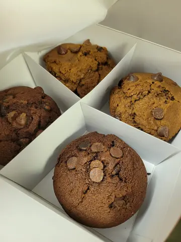 今晚买咗啲券嘅差唔多到期,所以就买番啲曲奇食下今日买咗咖啡特韧,白朱古力果仁,三料朱古力,仲买咗四个松饼咖啡特韧冇咖啡味,又冇乜朱古力味,呢个一般般,白朱古力果仁就冇想像中咁甜,有少少咬口嘅果仁都几好,三料朱古力,我就觉得普通,朱古力差唔多,冇话特别浓味松饼就买咗咖啡朱古力同埋三料朱古力,松饼好松化食落去好重味好重牛油味,唔错下次有机会,就应该会试埋brownie甜嘅甜咗啲,但佢嘅质感系软身真系系我杯茶,间唔中食都冇乜问题嘅…查看更多