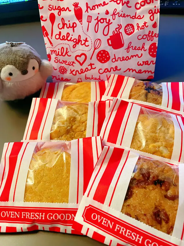 望住佢執咗越來越多間分店,心裏都好難受,所以每次行過,都會買上幾塊支持一下,同時滿足一下自己嘅肚仔。因為疫情關係,曲奇餅買三送三,鬆餅買二送二提早到晚上八點就推行!(係20:00!)曲奇餅$7.5一塊,鬆餅大約$9一件,超划算。買來做第二日嘅早餐啱啱好!最鍾意食甜心朱古力、牛奶朱古力、三料朱古力曲奇餅!每塊都好鬆軟,好chewy。當然美國出產嘅就比較甜啦,所以每次我都會配上一杯茶。只要一打開個包裝,曲奇嘅香味就已經好引誘,忍唔住一啖一啖咁食晒!查看更多