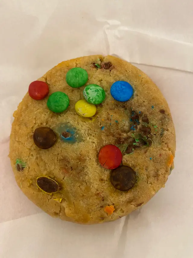 其實由細到大都有食呢間曲奇店,咁多年都覺得佢冇乜特別,不過硬係覺得有種感覺好親切,好想食😂我次次買來食都覺得佢太甜,同埋太油,不過佢硬係屹立不倒,睇嚟應該好多香港人鍾意食,但係平時其他店舖如果買咁甜嘅曲奇應該冇乜人幫襯,所以呢間嘢都有佢嘅魔力,解釋唔到當日只係買咗呢塊m&m 曲奇, $16 ,價錢唔算好平,不過都可以, 曲奇直徑大概六cm大細,唔算好大,但亦唔算迷你。外觀來講有啲奇怪好似爛蓉蓉咁,唔知點解抽中呢塊俾我⋯⋯查看更多