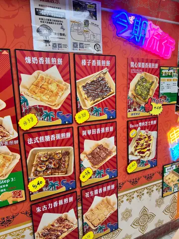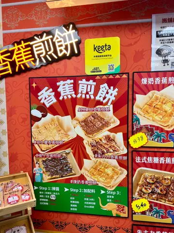 主打泰式香蕉煎饼,店面细细但好抢眼,扫街时经过都会闻到阵阵香味,成日都有人排队。🫓 香蕉榛子煎饼即叫即煎,等咗大约5分钟就拎到手,热辣辣好香口。饼皮煎得脆卜卜,唔会太厚,咬落去有层次。入面夹住切片香蕉,配上榛子酱,甜度啱啱好,唔会腻。榛子酱香浓但唔抢味,同香蕉好夹,食落有少少似Nutella版香蕉多士,但口感更丰富。煎饼会切成细件,方便边行边食或者同朋友share,几贴心。香蕉榛子煎饼香脆唔腻,甜度适中,扫街食一件已经好满足。#葵芳美食 #蕉积妹 #香蕉煎饼 #扫街甜品 #葵涌广场 查看更多