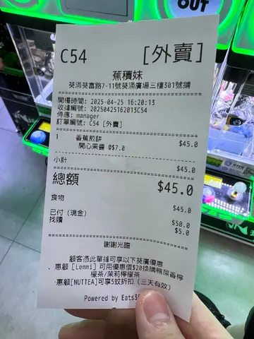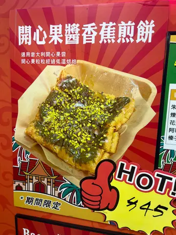 今日喺葵广因为老婆想食就买左蕉积妹嘅榛子酱香蕉饼,确实系一个唔错嘅甜品选择!呢款香蕉饼外皮煎得金黄香脆,咬落有轻微嘅酥脆口感,内里嘅香蕉软糯温热,散发出天然嘅甜香,令人一试难忘。榛子酱涂得均匀,浓郁嘅榛子味同香蕉嘅甜美互相配合,味道层次丰富,令人满足。份量适中,作为下午茶或小食啱啱好,食完唔会觉得太滞。不过,榛子酱嘅甜度略为高咗,食到后半有啲腻口,特别系对唔太钟意甜食嘅人黎讲,可能会觉得有啲过甜。如果可以稍微减低榛子酱嘅甜度,或者加啲微酸嘅配料(如新鲜莓果或乳酪),应该会更平衡,令人食得更舒服。店舖环境干净企理,服务员态度友善,点餐同上菜都好有效率,整体用餐体验愉快。价格合理,性价比唔错,适合想食个简单甜品嘅朋友。虽然甜度稍高,但整体来讲都唔错嘅!查看更多