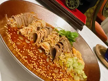 「蜀道」,有别于现今嘅一般川菜,一改以往嘅旧印象,唔系一味得个「辣」字。老川菜实则以「七分不辣、三分辣」为主,而「蜀道」亦希望可以将传统嘅川菜风味重现,所以餐牌嘅菜式都系以辣与不辣各占一半架。小JM妈虽然不嗜辣,但今趟却食得好滋味,辣得过瘾!而且仲有女茶艺师表演添。 川卤鲜鲍、娇玉嫩竹笋尖、馋嘴粒粒香川卤鲜鲍:鲍鱼鲜味肉弹,酱汁麻而不辣娇玉嫩竹笋尖:味道清新,竹笋尖够嫩而且爽脆馋嘴粒粒香:外层脆口无比,内里辣得过瘾 开水白菜系四川名菜之一,由川菜名厨黄敬临系清宫御膳房创制,亦系国宴嘅其中一道菜肴,同时亦深得慈禧太后所喜爱。 开水白菜嘅鸡汤颜色浅白如开水,但味道却鲜甜无比,令蔬菜更觉香甜。 山珍炒牛肉眼粒山珍爽口清甜,无草青味,而且吸收咗牛肉嘅油份更觉可口。牛肉味浓郁,肉质够软滑。两者可以绝佳嘅配搭。 虾饺藕盒拼田园时蔬虾饺酿于细薄嘅藕片之中实属心机及功架嘅表现。再配以醒胃酱汁进食,更加恰到好处。^ 担担面、鸡汤面、特色茶 ^ 糍粑冰粉 …查看更多