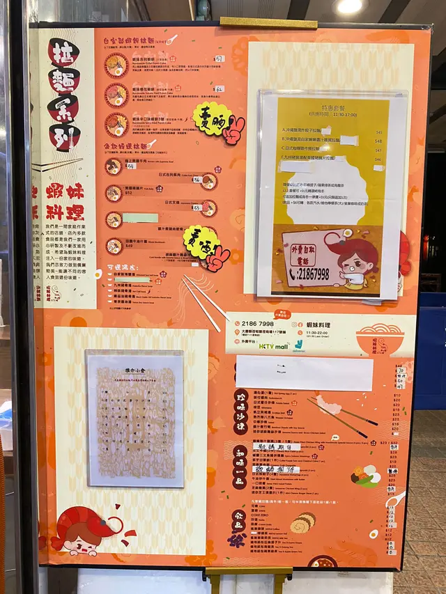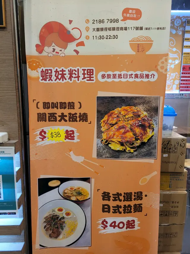 蝦妹料理 (大围) 网址: https://s.openrice.com/QrLS0LRmA00 地址: 香港大圍車公廟路69號顯徑商場B翼地下117號舖 电话: +852 21867998
