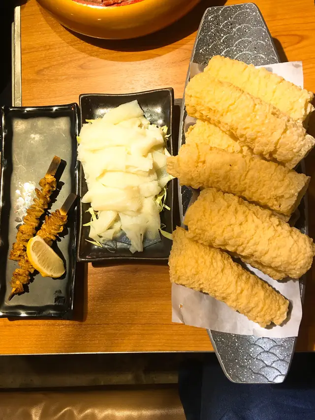 這一次來到表叔刺身串燒火鍋,一次過滿足晒三個願望!喜歡吃雞的我就點了四川麻辣鮑魚雞煲湯底🐔這裡的雞煲是帶點黑椒味的,很特別!另外還有幾粒小鮑魚呢!最推介的火鍋料就是手切頂級牛頸脊🐃雪花紋路超美!入口即溶,牛味十分重👍🏻最特別的是即炸響鈴,都是店舖自家製的,大大舊,好滿足!而串燒就叫了雞皮串,很脆口!最後就叫了刺身拼盤,有三文魚、劍魚腩、八爪魚、帶子和希靈魚,很新鮮,質素非常高🐙真係一次過滿足晒刺身、串燒、火鍋三個願望!查看更多