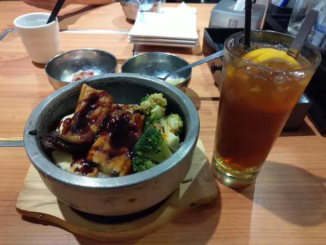 LUNCH 時間路過此店, 懷念前身大同燒烤的平靚正午餐,  決定再試,  我老公喜歡通菜牛肉,  好多通菜, 佢話可惜通菜有太多渣, 這是很難避免的。囝的粟米魚柳好大碟, 難怪周圍的男士多是叫這個,  除此之外, 男士都會叫蒸魚,  我見都好大條。 我則叫石鍋鰻魚飯,  賣相吸引, 仲有隻蛋及西蘭花,  HK$63 的價錢, 可說超值。每個餐都有湯及茶, 我還聽見服務員問還加唔加添湯, 我估是免費添湯。我吃完鰻魚飯後, 發現桌子還很熱, 我很好奇問服務員, 個石鍋幾多度 ? 他禮貌回答最少 250度, 嘩 !  真是非一般茶記可以做到咁高質的午餐。查看更多