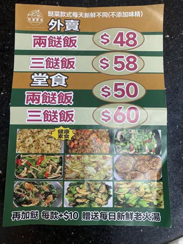 这一个中午,突然有一个小任务把我猜到来牛头角的定富街。办好事后的我亦时正食中午饭的钟数,而定富街这一个车房林立之地,亦是有好多不知名而又老字号的小食肆林立之地。看了一个圈,再看多一个圈,我看到了一个素字。以前的我,对素这一个字不会太过敏感,现在跟著太太,茹素多了,一看见素食的餐厅,尤其是这一类型的小小街坊素食店,我总是有一种无形的冲劲要去试一下。小小的店,家庭式,街坊式,来者都是附近的老人家及附近住的茹素人士。除了我之外,全是她们熟口熟面的老顾客,叫什么,食什么,老板娘完全知晓,有更熟的客更主动帮忙起来,接触得多素食人士,就会经常看见这样的亲切场面。 我很饿,毕竟已经过了2:30,饭啊,我觉得要一大碟饭才能令我变回一个温饱的人。看了两看,我决定简单地食一个炒饭,一个素咸鱼素鸡粒炒饭。小小店,用的食材也就是一般在素食食材店买到的雪藏素食食品,所以,做出来的味道是非常亲切的,因为是一个家的味道。这一些小店,只是满足周边素食者的要求,简简单单的,就是这么的简单。这儿也提供早餐,素猪扒包,车仔面等等的,单是从 menu 上看见,这些东西都是以那些雪藏的素扒制成。的确,只是为了满足附近素食人士的所需而设。 是次我也点了饮料,热奶茶非常之浓香,滑我就不敢说,够奶味,已经是很好。简简单单,没有要求,只求一餐温饱,食一餐饭,就系咁简单…查看更多