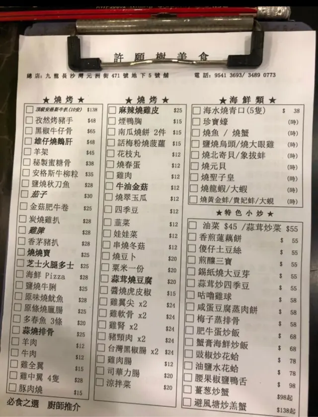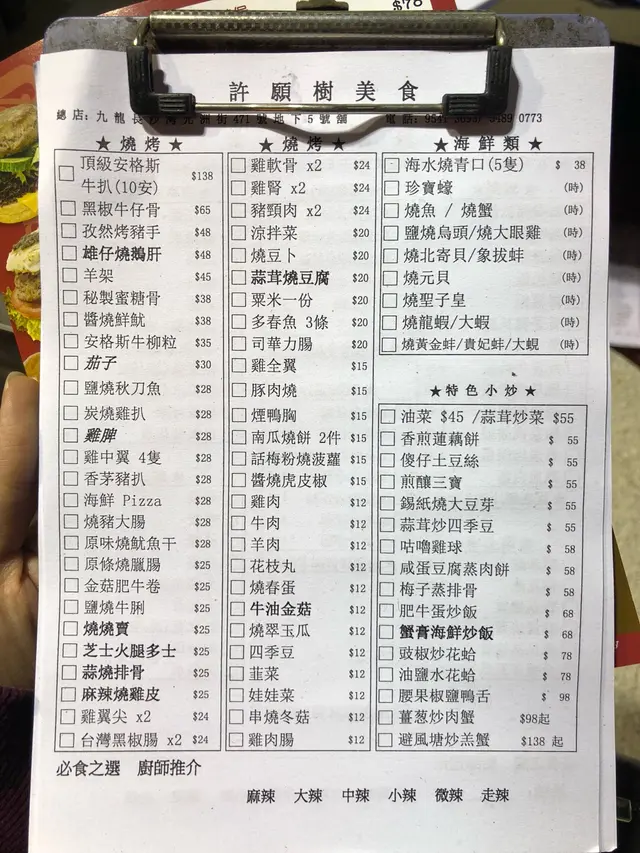 家住附近, 經常來許願樹食消夜.整體黎講除咗貴少少之外, 係好食.土豆絲, 炒得好過出面唔少四川嘢, 落足雞粉, 而且濕炒, 好味道.留意, 食大陸嘢就係要食味精, 食一滴香, 識食一定係咁食.燒腸仔, 有時燶咗D, 但都好食, 燒墨魚丸, Q, 彈牙, 有墨魚粒, 仲想點?炒蕃薯苗, 好食, 肥, 油, 但係好食, 又係多雞粉.燒海鮮, 我太窮, 吃不起, 但應該可以?啤酒, 落冰杯, 係冰杯, 大牌檔消夜俾冰杯你, 足見誠意. 會回頭.查看更多