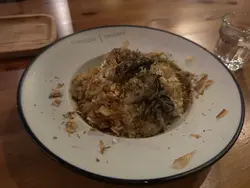 3個人去到叫左1個意粉,1個意大利飯,仲有一個豬鞍,點知要等1個半鐘先開始上菜,仲要又貴又唔好食。。。個軟殼蟹黑松露意粉好普通,但勁油又鹹,真係好麻麻地,但已經係最正常果個。。。之後個龍蝦汁蝦意大利飯先精彩,我唔明點解佢地可以做到勁水又淋,唔講真係以為食緊中式湯飯或者糊仔咁,人生未食過咁水又淋既意大利飯。。。直頭似係用普通白米整出黎既咁。。。之後食落口又有一陣怪味,可能我見識少,真係唔鍾意喇。。。仲要隻蝦又勁唔新鮮,感覺係放左係雪櫃幾日先拎出黎既咁,完全無口感,食落口一pat野咁。。。我真係唔識欣賞。。。然後到個豬鞍,個墊底嘅薯蓉居然係凍既,係啱啱上菜就已經係凍既。。。然後個豬又係生既。。。我等左1個半鐘俾d咁樣又生又凍既菜我真係不能接受🙃 仲要咁樣收我地791蚊。。。 好在最尾直接退左個等左1個半鐘都仲係生既豬鞍之後埋單540蚊, 但540蚊食1個普通意粉同埋一個垃圾Risotto,得罪講句真係自己煮仲好食過佢🙃 又係永世blacklist系列🫡…查看更多