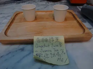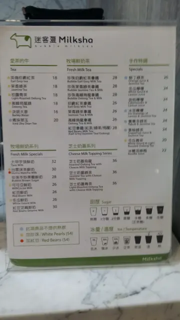 据店家提供的饮品排行榜,人气饮品包括大甲芋头鲜奶及各种珍珠奶茶。在思考要喝什么的时候,不妨试试店员推荐的饮料。可以试饮的是香柚绿茶,满满的柚子果肉配上绿茶,酸酸甜甜很清暑,不错。可是因为是第一次来迷客夏,还是想试试店家热卖的饮料。餐牌甜度选择比一般饮料店多,可选0,1,2,3,5,7,10%糖,比较弹性。店员也会很贴心建议饮料应该配搭什么甜度。养乐多绿茶(左)$25 及 珍珠伯爵红茶拿铁(右)$29友人点了养乐多绿茶去冰微糖,酸甜度刚好,而且饮料摇匀得很好,每一口的味道都很平均。而且绿茶味不会苦涩,反而有一种淡淡的茶香味~而珍珠伯爵红茶拿铁(温,微糖)也不错喝,珍珠是白玉珍珠,个人感觉较黑糖珍珠甜,下次可以试试2分糖。珍珠有咬劲,不会太硬或太腍,硬度恰好。伯爵红茶很芳香,比起茶味,香味占的比例较多,混和了牛奶后更显得顺滑,容易入口。感觉店员真的很努力在手摇部份,才可以将饮料调配得这么好,下次经过会再试~
