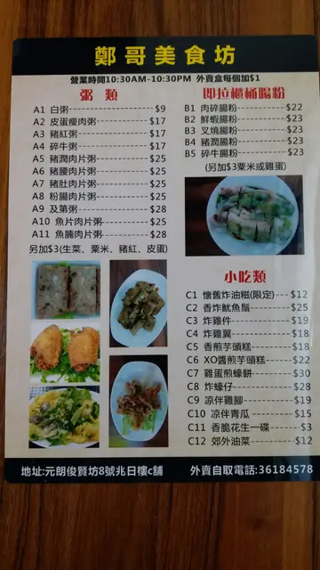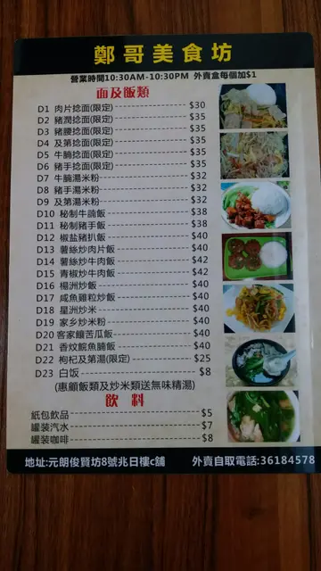鄭哥美食坊 (元朗) 网址: https://s.openrice.com/QrLS0JbS800 地址: 香港元朗俊賢坊8號兆日樓地下C號舖 电话: +852 36184578