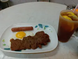 一個小菜連白飯加可樂,收65蚊, 今次我就要咗個椒鹽肉排, 其實可以唔要可樂要例湯, 但話明港式風味,就梗係要杯可樂啦. 嘢食好快就到喇, 原來佢唔係肉排嚟㗎, 係椒鹽豬扒咁樣