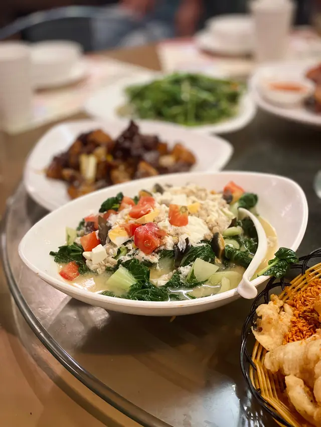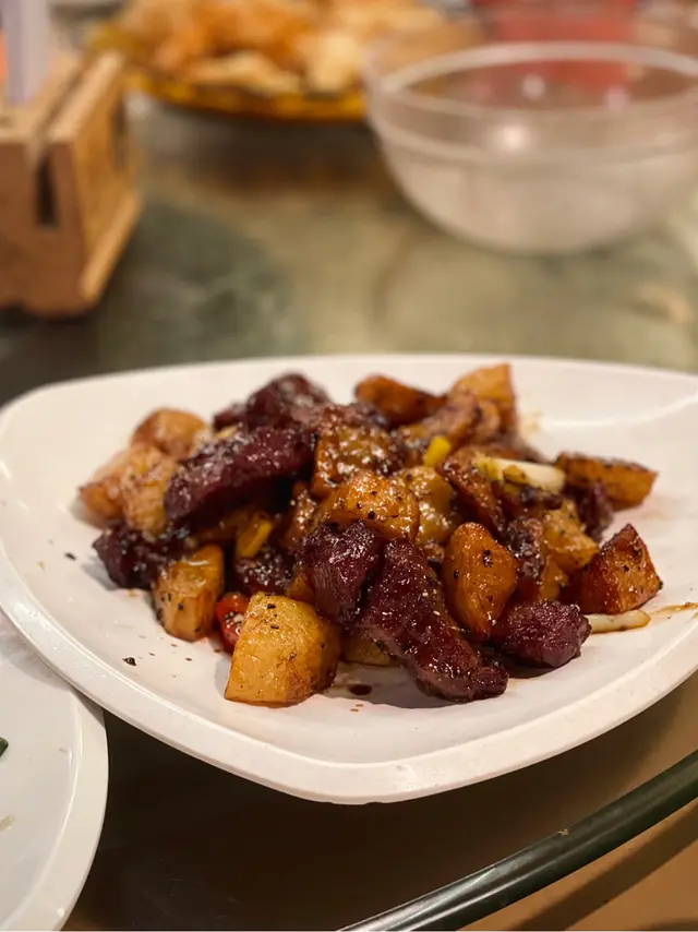 finally tried this dai pai dong in tst coz the other famous ones were fully booked (even with a week’s notice!). so glad we came—cheap & delish. just wish the a/c was stronger. & rmb to book ahead!終於試咗呢間尖沙咀大排檔!本來想試其他出名嘅,但打咗成個星期電話都full晒(星期五晚真係好誇張!),所以book咗呢間。好彩冇失望,又平又好食!不過冷氣可以再勁啲,同記得要book位啊🐷deep fried pork knuckle 脆皮炸豬手signature but x rec—too chewy & hard to bite招牌菜但唔推介,太韌有啲難咬🥔diced beef tenderloin in black pepper 黑椒薯仔牛柳粒both beef & potato were full of flavour牛肉同薯仔都好入味🦑salt & pepper deep fried squid + bombay duck fish椒鹽鮮魷 + 椒鹽九肚魚crispy & perfectly seasoned炸得脆卜卜,調味剛好🍤fried prawn w salted egg yolk 金沙大蝦球salted egg yolk coating was super ADDICTIVE鹹蛋黃醬超邪惡,食到停唔到口🦑steamed squid & vermicelli w garlic 蒜茸粉絲蒸鮮魷🥬stir fried morning glory in fermented tofu chilli sauce椒絲腐乳通菜🍲satay beef & enoki mushroom casserole 沙嗲金菇牛肉煲🍆braised minced pork & eggplant casserole 魚香茄子煲♨️steamed minced pork w salted fish 咸魚蒸肉餅🥗baby cabbage, tomato鮮蕃茄金銀蛋肉崧浸白菜仔price: $100-150 pprating: 8/10revisit? yesss…查看更多