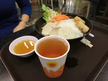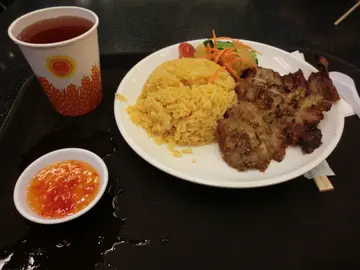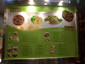 记得上年,有位任职公务员的女性好友因约满而失业!:( 期间,我间中收到 Openrice 寄来的免费戏票,有时,见到适合她的电影也会约她一起看!:) 让她失业期间,也有免费戏睇来解闷!加上香港交通费高昂! 我尽量迁就她的地点!好了!她经过一段时间,终于找到新工作!真是恭喜她! 可是,与新同事却有代沟!:( 早前,她为了答谢我之前请她睇免费戏,今次,轮到她请我嘞! 那天,我们到旺角朗豪坊 UA 睇 <虎胆龙威> ,之后,她建议走到朗豪坊 4 楼美食广场那层的 <金宝 Cambo Cafeteria>!这间 <金宝 Cambo Cafeteria> 是泰国餐厅,在香港几受欢迎!由于,我不好食辣,所以至今尚未帮衬过!下午六时半,美食广场已经几 full! 幸好!两个人找位子不算难! :)位于美食广场的 <金宝> ,必定是一间 外卖店,食客需先购票,等候食物。我的选择:香茅烤猪颈肉红饭 $49烤猪颈肉尚算松化肥美!加上香茅及黑椒粒等配料,令香味提升不少! 配上橙黄色的红饭更是滋味!她的选择:春卷扎肉捞檬 $44春卷甘香松脆!扎肉切到薄一薄!咬落有点爽口弹牙! 红萝卜丝、芽菜等,口感清爽!:) 檬粉份量十足! 拌上酸甜汁更增添风味! 另配有中国茶味道清而微甘,用来解腻确是一流!:)查看更多