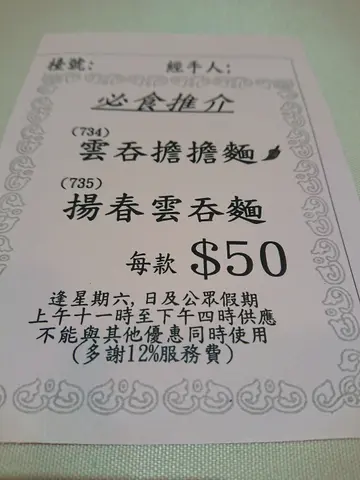 难得过到黎东涌,一定要去全港剩返东涌先有既金沪庭,叫左云吞担面面,扬春云吞面同炸银丝卷。呢间最好食既就系担担面,汤底好浓郁,重花生酱味,又大大碗,云吞包猪肉。炸银丝卷新鲜炸起,上枱一阵仲好辣手,但可以索干d油。呢间差在要收12%服务费,唔合理,难怪冇人排队。
