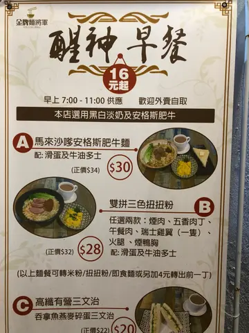 收你30蚊嘅早餐, 你点都估唔到有即烧牛肉畀你, 呢间嘅招牌早餐沙嗲安格斯牛肉面, 即叫即制,即烧牛肉, 再加上好重花生味嘅沙爹汁, 感觉好似食梗九龙城方x荣记火锅一样, 真系唔系四围可以食到。 仲有一份炒滑蛋多士,冰镇奶茶或咖啡, 收你咁嘅价钱,真系冇得输。 再加上两个经常面露阳光笑容既老板仔, 令人有宾至如归嘅感觉, 未试过值得黎试下。餐厅位处土瓜湾巷仔,比较难揾, 其实就系天光道对面。 衰在礼拜日休息, 想放假同老婆黎叹下早餐都唔得。…Read More