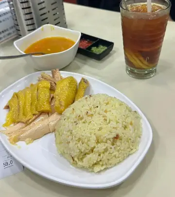 我点了招牌无骨海南鸡饭(大份量)。主菜方面,鸡肉完美无骨,鸡皮弹牙,肉质肥嫩,无油腻感。鸡味本身就很清爽,搭配的葱油和辣椒酱更增添了一丝浓郁的滋味。米饭粒粒分明,却又不至于太过浓烈,却又饱满鲜嫩,令人满足。附赠的自制汤头,清淡甜美,汤底清淡柔和,带来家的温馨。饮品方面,我点了冰柠檬茶,茶香清爽,香气宜人。糖渍柠檬片也制作精美,不涩不涩。总而言之,这是一家不张扬却用心经营的本地餐厅。价格与口味完美平衡,无论是工作日独自用餐还是与朋友简单小聚,都是绝佳之选。我一定会再来的。