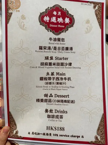 上星期四,我和朋友到了位于荔枝角D2 Place的金凤大餐厅享用了一顿美味的晚餐。整体体验可谓相当愉快又满足,最正是有怀旧铁板餐。特饮也有这么多的选择!上铁板之前,我先来碗罗宋汤。罗宋汤的色泽诱人,汤底浓郁,略带酸甜,番茄的清新味道与肉类的鲜香相得益彰,是餐前的绝佳开胃菜。朋友说忌廉汤滑顺可口,奶香浓郁。朋友点了什扒餐(配蒜蓉汁)。这道菜的蒜蓉汁香气四溢,完美地提升了肉质的鲜嫩。特别是猪扒的熟度恰到好处,外焦内嫩,搭配蒜蓉的浓郁味道,让每一口都充满享受。我点了鸳鸯扒餐(配黑椒汁)。猪扒和鸡扒的组合非常吸引,黑椒汁的辛香与肉质的鲜美交融,令我食欲大开。特别是猪扒,肉质柔嫩,适度的脂肪使得口感更加丰富。怀旧红豆冰清新解腻,红豆的甜度适中,冰品的口感滑顺,让人回味无穷,仿佛带回了童年的美好时光。完美啊!最后更以雪糕作为句号!金凤大餐厅的菜式不仅味道出色,份量也相当足够,是一个值得回访的好地方。…查看更多