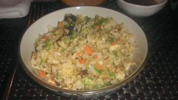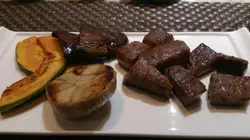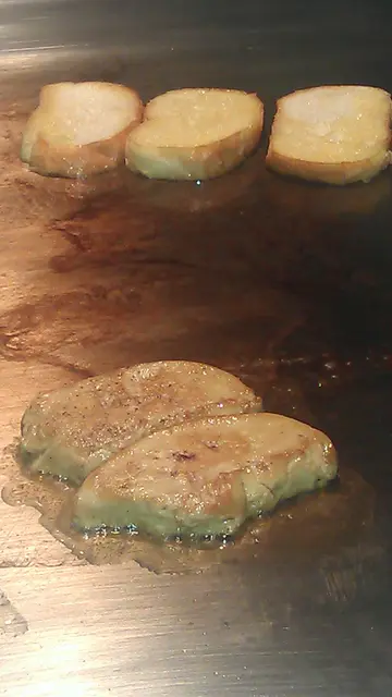 跟着今晚正式的主菜了,我们点选了鲍鱼,近江和牛,鹅肝和龙虾,最后加了黑松露炒饭;铁板烧选料新鲜当然重要,师傅的功力和料理功架也是极重要—环,今晚的师傅烹调功力尚可但功架就略为不足。鲍鱼烧得稍为过了一点火,入口有点靱,味道还可以。龙虾非常新鲜,师傅拆肉功夫也可以,但其做法显然不是正宗的铁板'烧',入口尚算弹牙鲜甜,只求味道的话还可以。鹅肝烧得火喉刚好,外带微脆,油香四溢,入口即溶,正。近江和牛,肉质松软,朋友一致要求七成,师傅亦交出水准,入口牛味浓郁,口感香软,不错。黑松露炒饭,用料一流,黑松露清晰可见,未食已闻到松露的香气,浓烈的松露味在口内不断散发,饭已纱得够干身,作为今餐的终结,真完美。总括今晚这餐厅的水平算是一般合格,有待进步。…查看更多