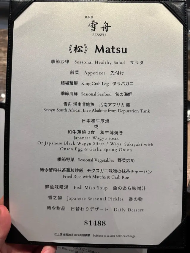 走進雪舟鐵板燒,暖黃燈光搭配木質裝潢,瞬間緩解外面的喧囂,能清楚欣賞廚師操作,整體環境讓人倍感舒適。服務團隊的應對相當得體,從入門引座、遞上熱茶,到用餐中及時更換餐盤、詢問飲品需求,節奏拿捏剛好,不會過度打擾卻處處體現貼心,全程體驗很流暢。最驚艷的還是廚師的手藝,牛肉煎製時火候掌控精准,外層焦香鎖住肉汁,一刀切開還能看見粉嫩的肉芯,入口嫩而不柴;海蝦煎得殼脆肉彈,灑上特調香料後香氣直衝鼻腔,連簡單的炒飯都粒粒分明,蛋香與米香完美融合,每一口都是對味蕾的犒賞。 價格不貴,值得試試。…查看更多