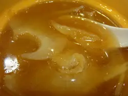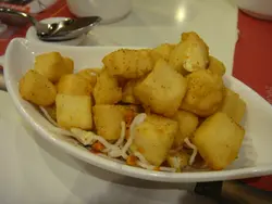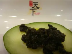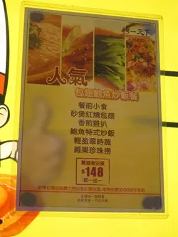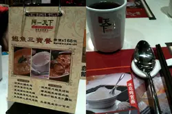還記得上年八月寫過一篇呢間餐廳既食評,此餐廳以賣鮑魚、魚翅平價為主(午餐),或許基於食物選擇較少,相對來吃午餐的人客也會少,於是他們改變了經營路線,每日推出不同六款的午餐set,有炒飯、炒麵、焗飯、亦有佛跳牆,算是多了選擇。久久未有幫襯的我,相約同事一起食lunch。來到此餐廳的人均會有前菜一碟,雖然前菜不是什麼特出,但醒醒個胃,亦算不錯呢!之後點了乾炒牛河及鴛鴦飯,來炒粉麵飯之前,亦有一碗。中湯喜歡飲湯的我,喝了整整一碗,湯的味道不錯,每碗湯都有不少材料,看得出是老火湯,不像一般茶餐廳般,湯+水或是加上大量味精,未食正餐已加了不少分!