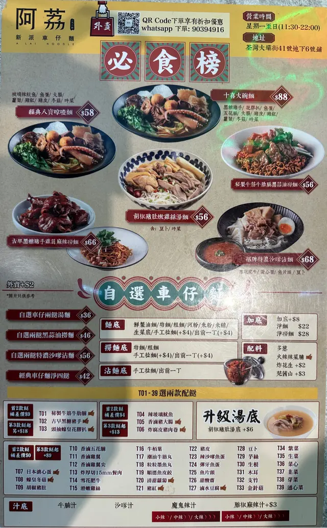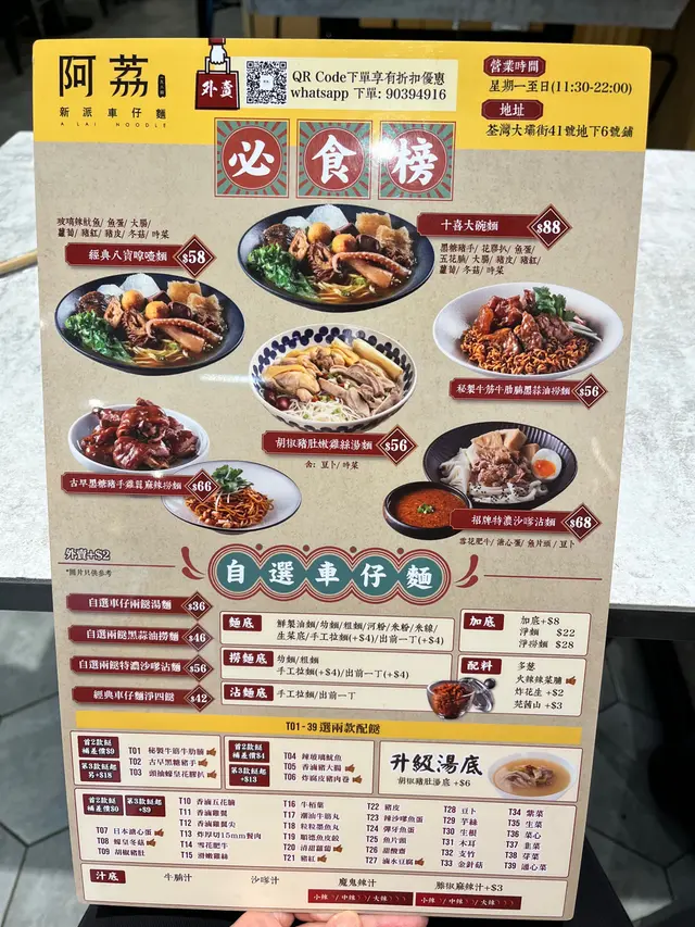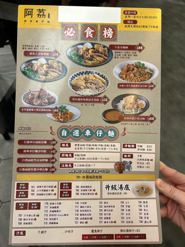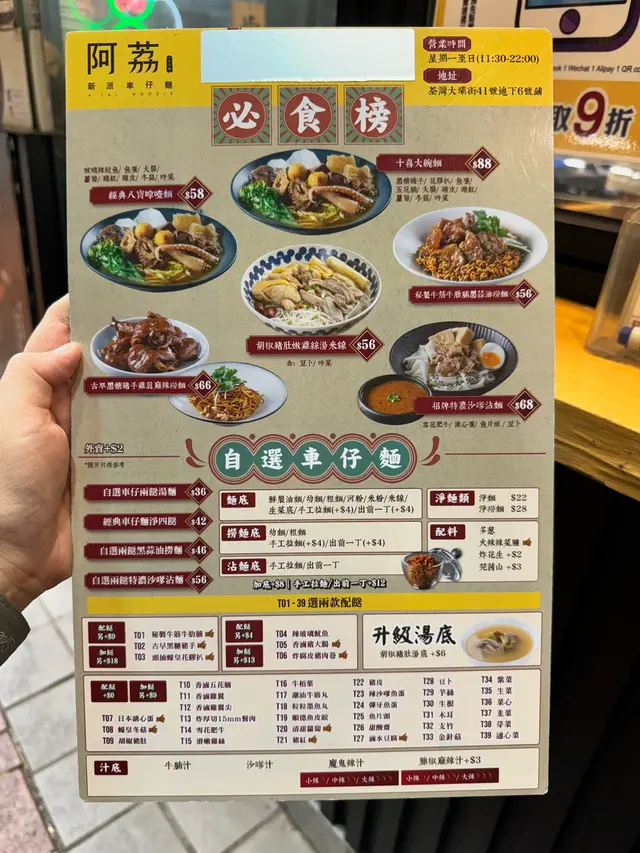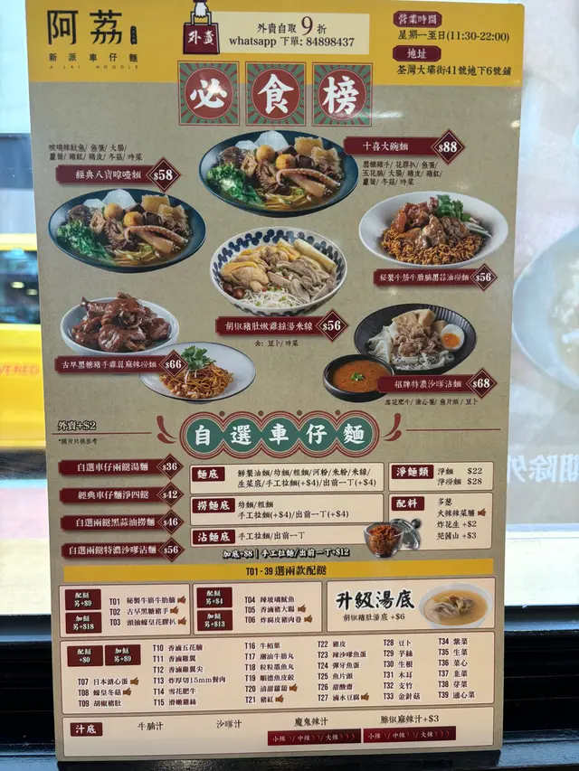 阿荔車仔麵 (荃湾) 网址: https://s.openrice.com/QrLS0x3aB00 地址: 香港荃灣大壩街41號地下6號舖 电话: +852 26606999