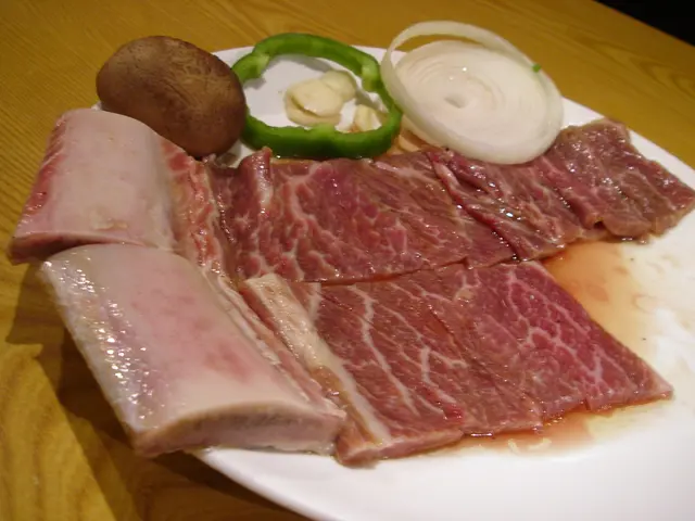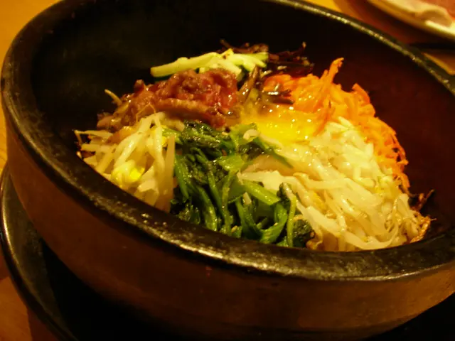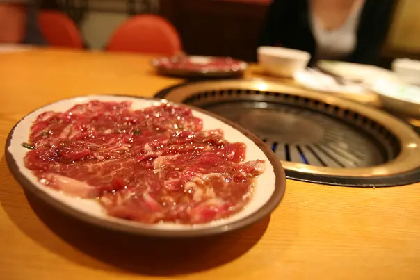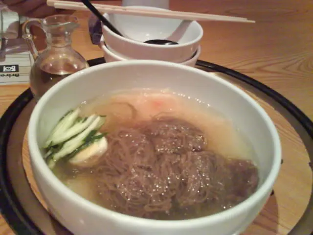 係附近逛逛前先找個吃的朋友仔有D 病病地,說吃個韓國湯會好快點先上六小碟泡菜、薯仔、菠菜是不可少的最想不到就是那泡菜汁既熱豆腐蠻少機會吃到熱的appetizer牛肋湯淡而無味,湯色是白開水的一樣,一點奶白也沒有有少許的蛋花,真是少許的少