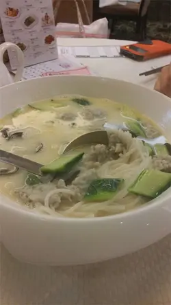 呢碗係花膠雞粥,裏面有切成一條條既花膠,係2位小朋友要食既,因為碗粥唔大碗,2 個小朋友分晒,但我個女食緊條花膠既時候佢話咬唔落。。。。我覺得好出奇,於是攞黎咬下,發現原來係1條橡筋