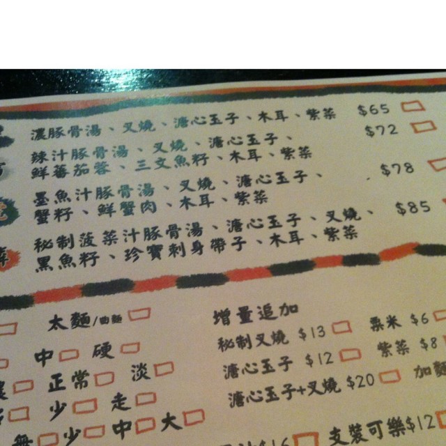 赤雷($72)辣度适中, 整体汤底合格!汤底有三文鱼子,汤底入口果然浓郁,很够味道,我几乎喝尽整碗汤,而且没有口渴的感觉,不错。 面质算系弹牙,硬度满意,叉烧甘香,用了半肥瘦的部份, 圆形切片, 质感还可以。青麟拉面 ($85) : 秘制菠菜汁豚骨汤, 溏心玉子, 叉烧, 黑鱼子, 珍宝刺身带子, 木耳, 紫菜. 直面正常硬度, 多葱, 少辣. 先试烹调而成的浓厚豚骨汤底。所以在这面端上来之后的第一个动作,当然是先喝一口汤底为快啦!把汤呷上一口,这汤的味道果然浓郁,充满鲜味,是好味的豚骨汤, 而且都几浓郁香气四溢....汤底浓浓杰杰的, 个汤厚身比较油腻,面质弹牙,够韧性,挂汤能力不错,整体感觉不错不错. 溏心玉子好入味, 而且蛋黄味浓,带子同黑鱼子都好味,而且不用排队,下次会再试其他拉面。…查看更多