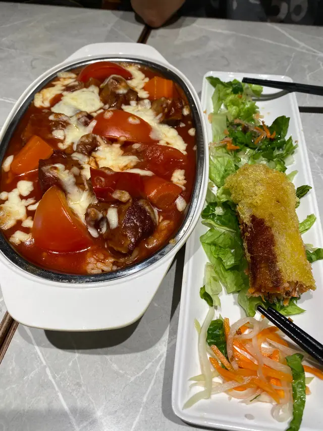 這裏的員工態度很好,食物也不錯本人今晚就食了泰妃雞飯和椰汁沙冰,雖然有+1服務費但是特飲有六折,而在早上我也在這裏食了沙茶牛肉麵和多士,沙茶牛肉麵和外面的茶餐廳分別不大但是多士口感很脆,而價錢也是十分便宜甚至比外面的茶餐廳也便宜。即使早上的人流很多但也不影響上餐的速度。泰妃雞飯的雞也有很多,還有一個比目魚飯也是很好食的和我會更加推薦這裏的芒果沙冰 芒果味十分之濃郁 價錢也是十分親民。會繼續支持這間舖頭 抵食