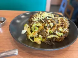 在荃湾睇吓商场以外嘅选择,走到海霸街有好几间小店,望入去见到坐满七成,试吓先😋入去用手机扫Code落单,叫左炒粉丝+炸鸡,同埋海鲜煎饼先嚟炸鸡,炸皮外脆,食落无乜鸡味,有3 件,唔「鞋」口,味道就好普通。韩式炒粉丝:🥹 就系「炒粉丝」,配如图,食落咸味偏少浓,就系一碟炒粉丝咁海鲜煎饼$45,配料无乜,食落普通嘅煎饼整体似港式街坊式韩国食店,如去食,怀住无高期望食,就咁食餐饭的期望去食 😀会食得轻松啲