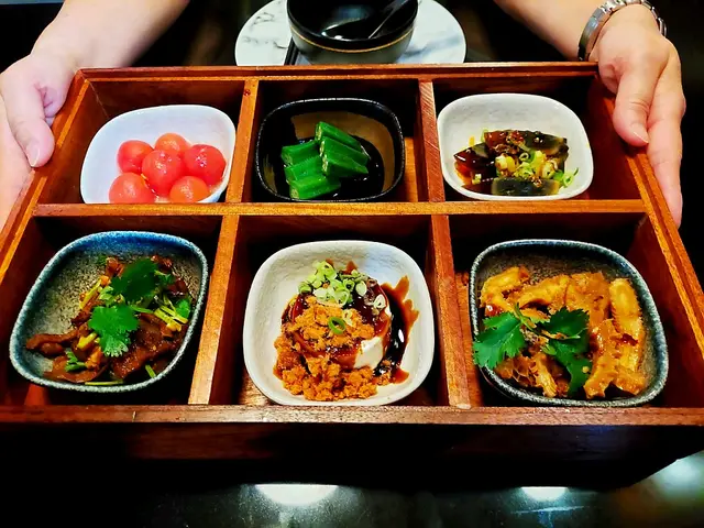 餸記潮食潮食6宮格艾雷鵝肝秘制口水雞潮滷拼盤(3拼)餸記炒米粉時令時蔬價錢💲: $168/ $228/ $168/ $228/ $168/ $118好味程度😋: 4/5服務🍴: 3.4/5環境🗾: 3.7/5性價比🥢: 3/5回頭率😚: 3.4/5-大坑除左大量cafe同舊式茶記之外,係後小小的街道都有呢間潮州菜,星期六晚大部份都係booking枱,但都坐滿架。晏奏都有做啲幾抵食的午市套餐。餐廳外牆簡潔乾淨,由出面望入去真係估唔到佢係食潮州菜😬-✅潮食6宮格。望落都好靚~ 話梅🍅入曬味,一咬番茄仔好多汁咇出來,甜中帶小小酸,好開胃清新。清酒秋葵沾小小豉油食,健康之選!肉鬆豆腐被滿滿的醬油膏包住,味道好經典😎 涼拌海蜇爽口,香麻油味。潮滷鴨舌條條都粗壯,唔怕無肉食。仲有我最鍾意的溏心皮蛋,個心流心ga😜-✅艾雷鵝肝。4塊鵝肝,嫩嫩的,帶點粉紅色😋 咬落口感綿滑細膩,加埋香醇的威士忌,有淡淡酒味而不膩,食完齒頰留香🤣-✅秘制口水雞。切得超靚!特別有條雞肉,擺碟有心思。雞肉啱啱熟,維持係肉嫩的狀態,近骨位帶小小紅😳份量幾多。醬汁好濃,比較杰,可以夾落雞上面,有小小似豆辨醬咁🤓 辣經係喉嚨先出,椒麻味好香,仲有白芝麻同蔥,食落小小甜,好有層次😆-✅✅潮滷拼盤(3拼)。滷水汁味道適中,唔會過鹹,帶花椒八角的香氣😍 完全滲入啲餸入面。大腸薄切,冇咩肥膏,好軟唔韌。鵝腎一樣薄切,唔會咬唔開。豆腐相反厚切大大舊,軟熟入味,好正🤤-✅✅餸記炒米粉。呢個炒米粉個人覺得係MVP‼️好有鑊氣,米粉炒得好乾爽,一絲絲的新竹米粉咁☺️入面有啲蠔仔、雞蛋、蝦乾、洋蔥、韭菜,XO醬,鹹鮮十足,又惹味🤩 -✅時令時蔬。蒜蓉炒白菜仔,不過走左油,炒得好香口🥳大量蒜頭炒,好夠鑊氣。菜仍然翠綠,爽脆,唔中意食菜既都會中意!-整體唔錯,鹵水野入味,鹵水汁有層次。炒野夠鑊氣😌 價錢有小小貴,但都係有質素既。佢地都有做lunch set就比較抵食啦!查看更多