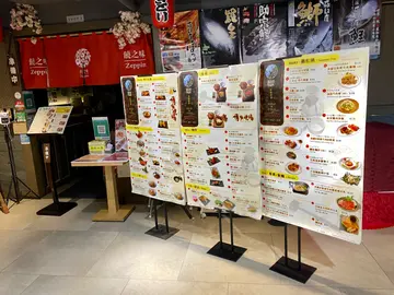 设有方台进餐区和吧台座位。吧台前摆有日本新鲜鱼生、贝类及虾蟹海鲜盘,让客人自选水产种类和烹煮方法。吧台与开放式厨房连接铁板烧、炸炉及烧炉区,客人可全程直击食物的炮制过程。