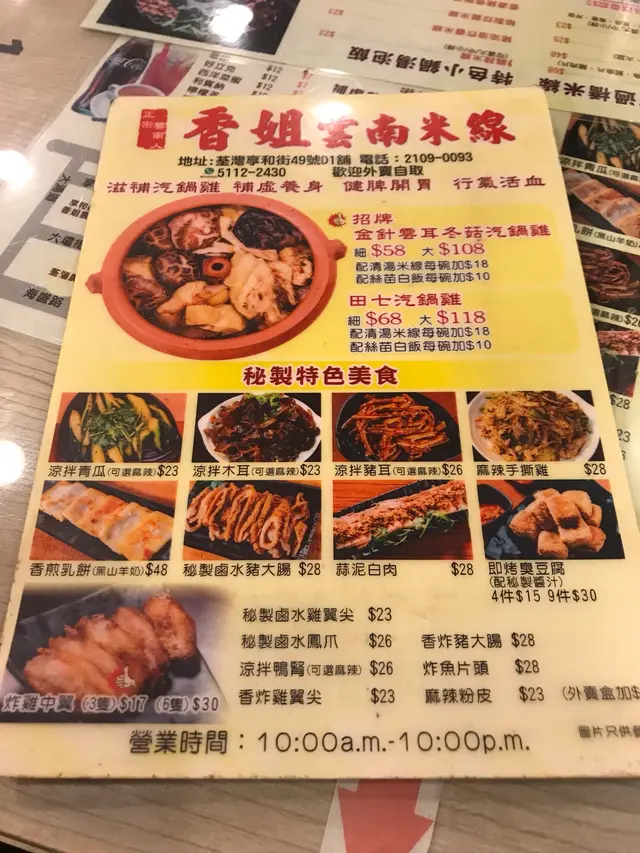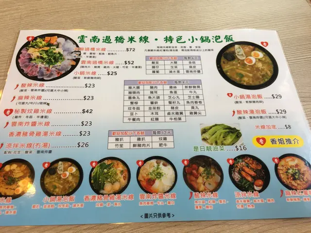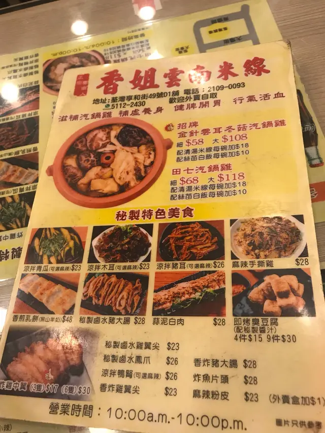 荃灣區內有好多米線舖,午餐想快手自己獨食,就去左冇咁多人排隊既香姐米線。去到都係等左5分鐘就入得,一個人食的確係快呢。去到我就點左個小鍋米線+腐竹+雞扒,湯底似係雞湯味,味道還好啦,有落味精搞到要飲水。腐竹都整得岩岩好,唔會搞到又爛又散,剪到細細塊咁,好易咬。個雞扒係煎好左再放落湯度,肉質就同自家製既煎冰鮮雞扒咁啦,平食既話 咁既價錢都冇乜要求。舖頭既伙記唔多,只得一個女侍應,但佢都好快手,態度都幾好,有時落單可能會等耐少少。…查看更多