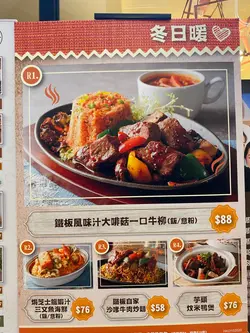 焗鮮茄豬扒飯、沙爹牛通