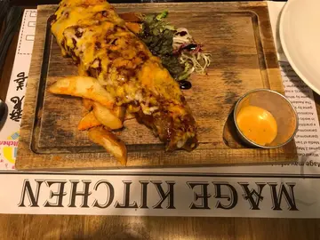 观塘由工业区转型做商业区,路面仍然比较窄,但不乏有些楼上餐厅是几好食的,价钱又大众化。和朋友在观塘区小聚,这餐厅在地铁站附近,上一楼,算是很方便就脚。中午的西餐有几个选择,可以选Salad Bar也可以不选。Salad Bar有几多蔬菜的。他们的Tenderloin steak 和T bone steak 食中午饭真是很抵食,只是一百元左右。餐汤较浓,美味。 牛扒都刚刚好,肉汁和味道适中。以份量来说,还是不叫Salad Bar比较好,不然就太多了一点。薯菜也不错。T骨扒的烧汁很惹味,有些韩式日式烧的味道。很满足的牛餐。…查看更多
